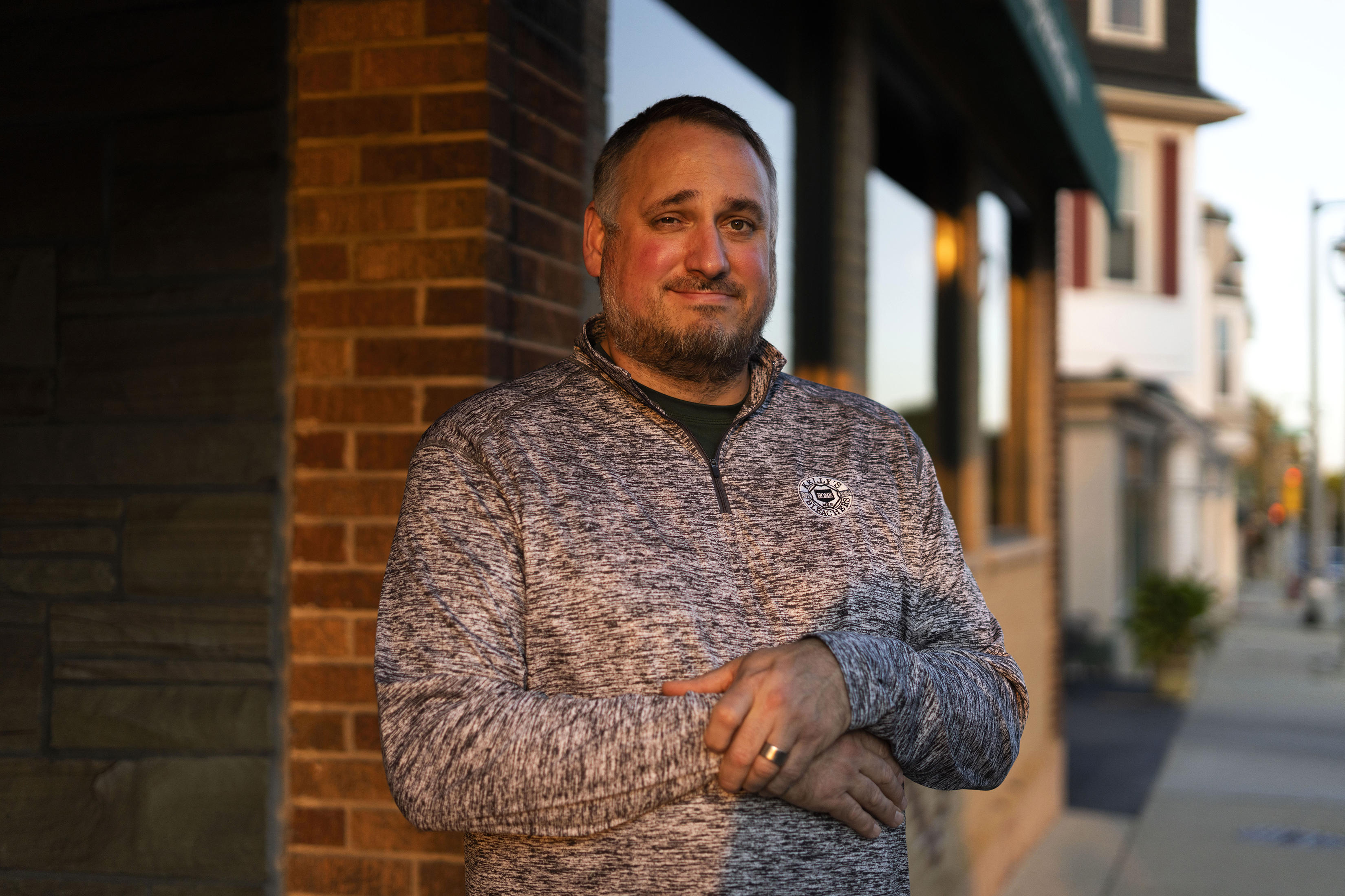 安东尼·卢奇尼(Anthony Luchini)是威斯康星州密尔沃基市凯利看台酒吧(Kelly 's Bleachers)的老板。2020年10月5日。这场流行病给体育产业以及依赖体育产业的人带来了巨大的金融灾难,威斯康辛州就是其中一个缩影。(劳伦·贾斯蒂斯/纽约时报)