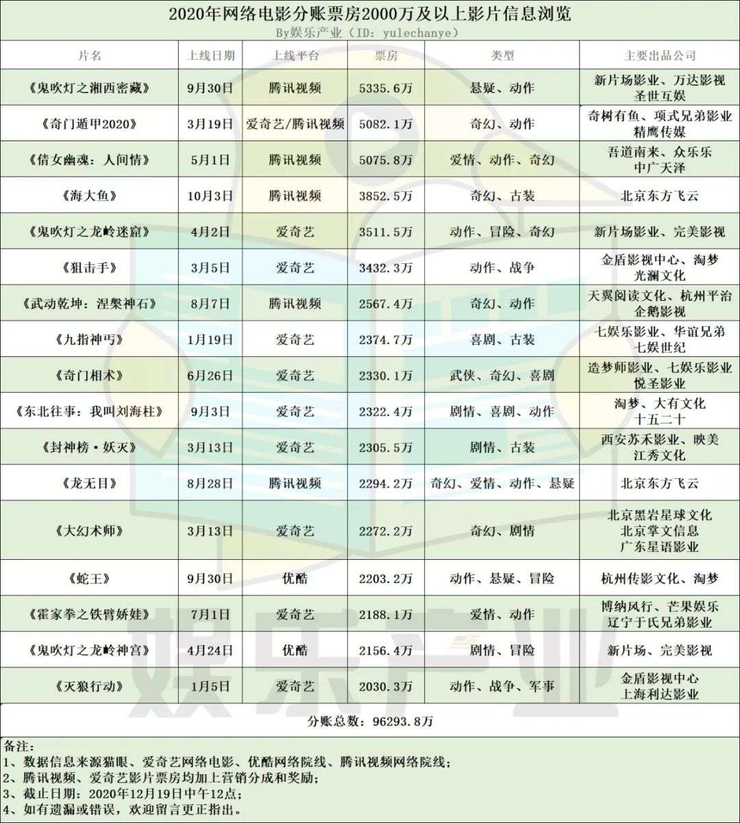 2020网络电影「奇幻漂流记」:破千万成及格线,全年票房大盘预计19亿