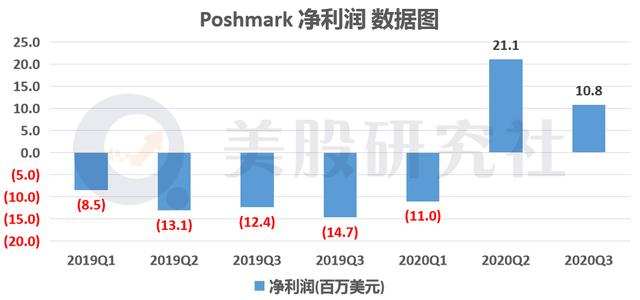 正因如此,能够发现Poshmark在对应季度下实现了扭亏为盈。2020年Q1和Q2分别盈利2110、1080万美元。