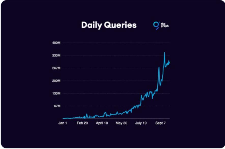 区块链本质上是分布式账本,这种特性使得链上各方对于数据查询的需求非常大。比如,一个事务在形成共识或者说最终记入账本前,可能需要矿工查询或者验证同一笔交易。Multicoin Capital统计显示,以太坊开发人员每天查询以太坊Laas平台Infura的次数超过100亿次,但主要的以太坊客户端中都没有提供强大的索引功能,也不能满足大规模查询需求。The Graph就诞生在这样的背景下,它的诞生大大方便了开发者检索区块链数据。