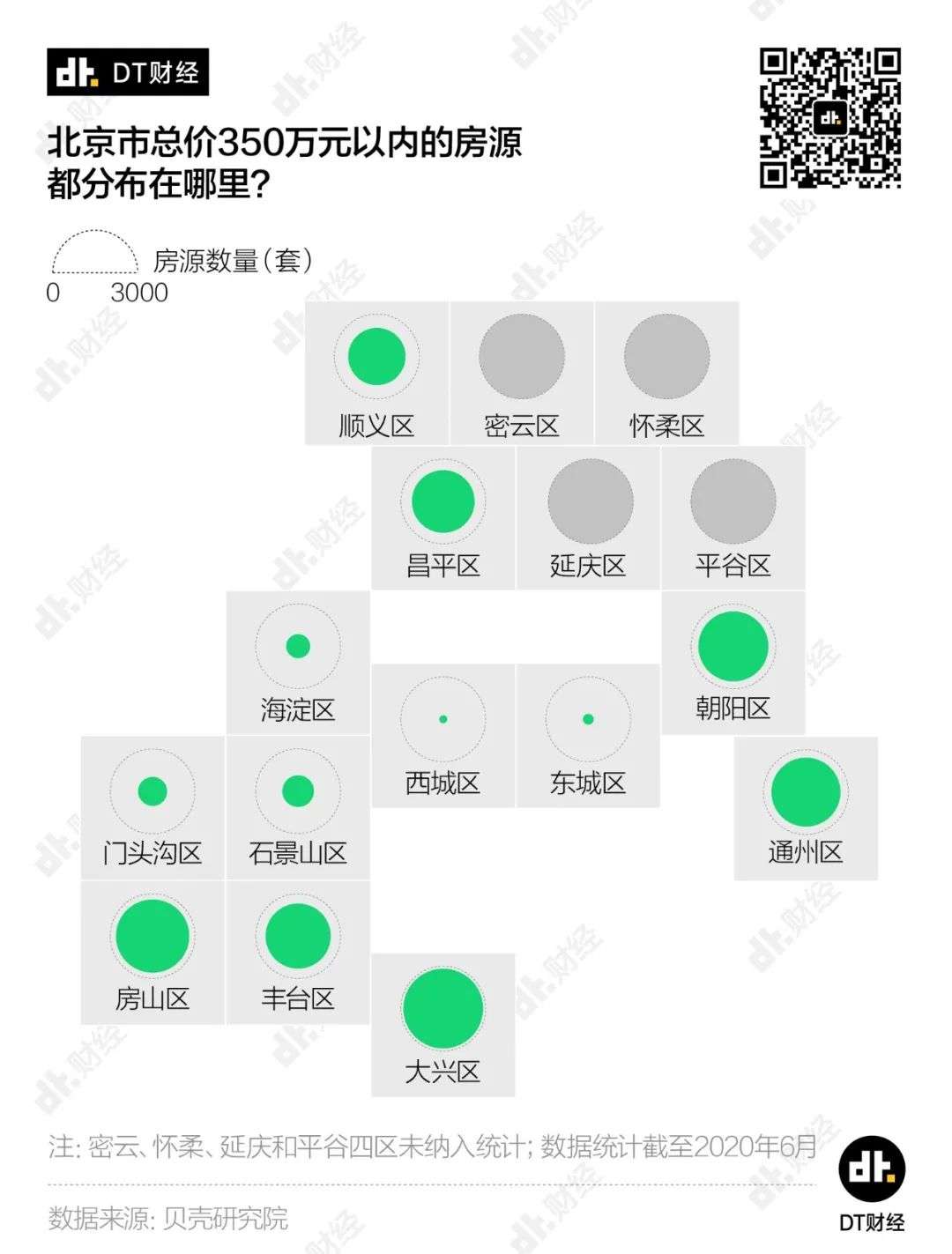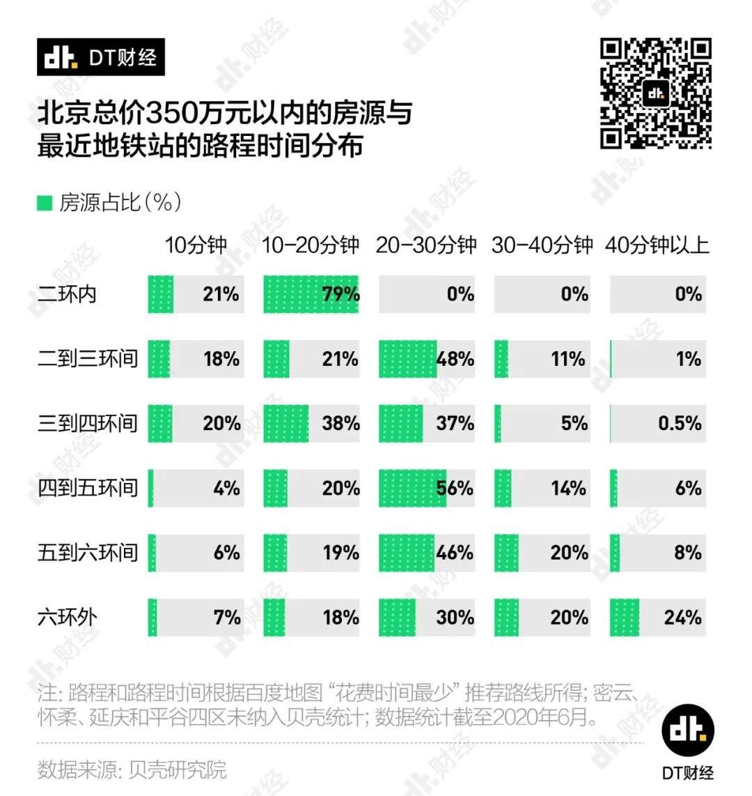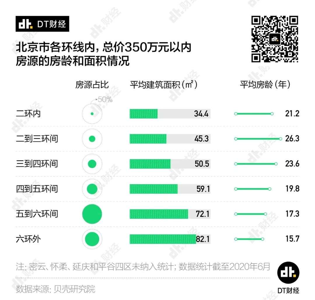 前段时间,DT财经跟贝壳研究院一起,把北京的6万多套二手在售房源研究了一遍(截至2020年6月),我们想知道,如果把总价限定在350万元范围内,在北京到底能不能买到一套兼顾交通、面积、房龄等多项指标的“完美房源”?