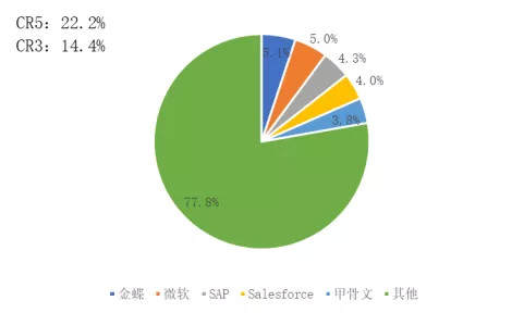四、SaaS服务格局较为分散,垂直行业更具掘金机会