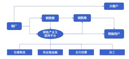 “在钢铁行业不断高质量发展的过程中,我们应该给贸易商一个新的定位,叫做钢铁供应链服务商。它不应该是以贸易为主了,而是整合上下游的资源,同时还能够给整个供应链提供增值服务。比如说加工服务,定制化分发。”他说。