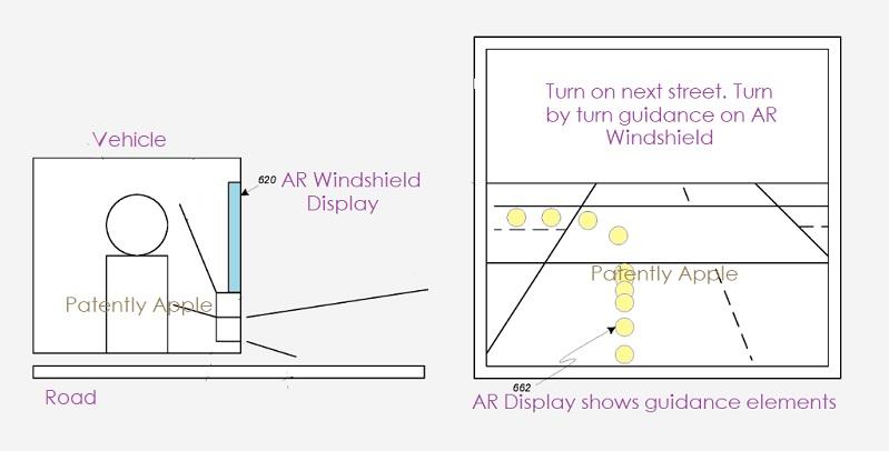 AR前挡风玻璃概念图 图片来源:Patently Apple