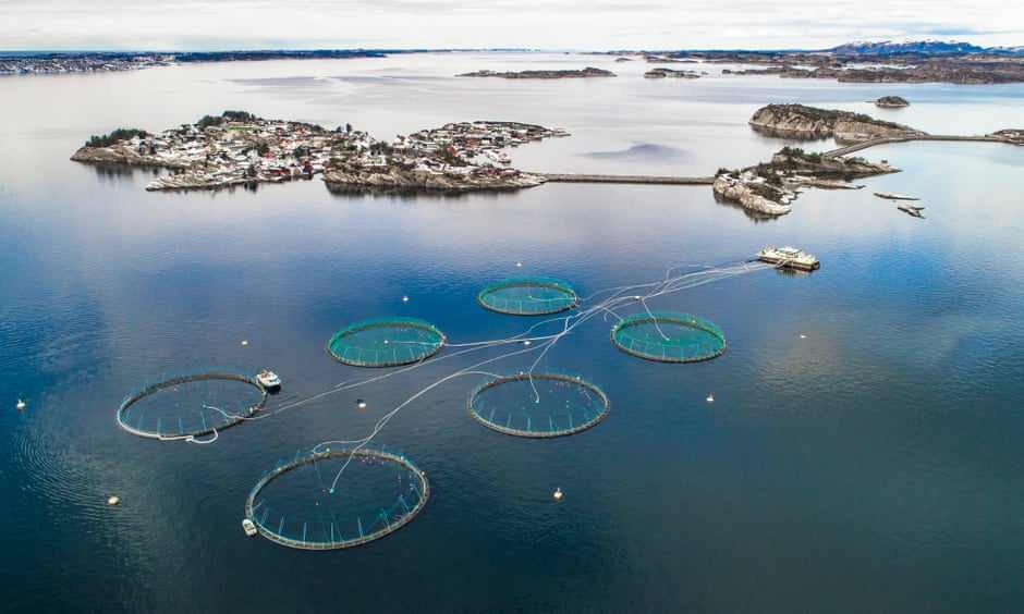 位于挪威城市卑尔根(Bergen)附近的一个鲑鱼养殖场。图片来源:Photograph: Marius Ltu/Getty Images/iStockphoto