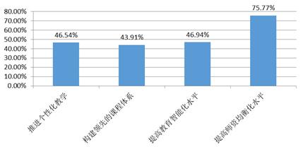 教育方面,选择集中度最高的是“基础教育需要改进的环节”,其中,对“提高师资均衡化水平”的需求远远超过了对“个性化教学”“教育智能化”。