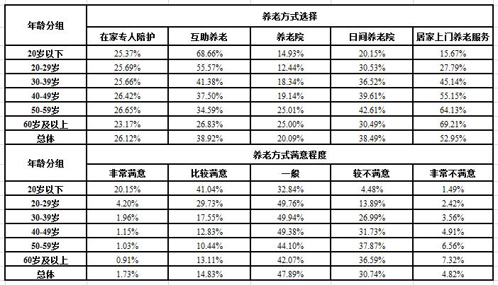 △ 分年龄组养老方式和满意度调查