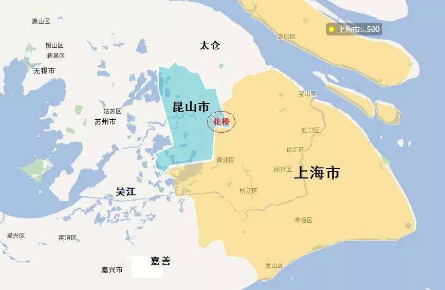从整个版图看,花桥像是一个楔子一样,直接插入了上海的腹地。