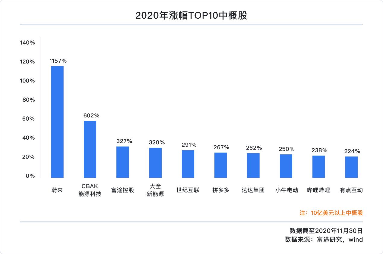 中概股2020年独家盘点:蔚来涨幅超1157%、阿里7237亿美元稳居市值宝座