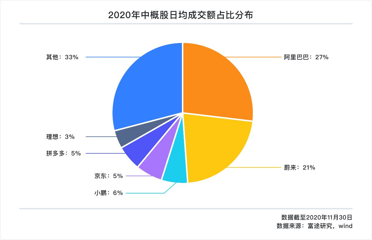 日均成交额前6名的电商三巨头和新能源造车新势力无疑是今年中概股关注度最高的赛道,6家企业占据了67%的流动性,其余256家企业共分33%的流动性。