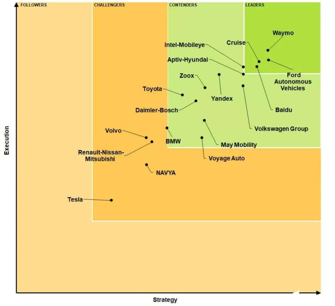 2020年自动驾驶汽车排行榜,图源Navigant Research