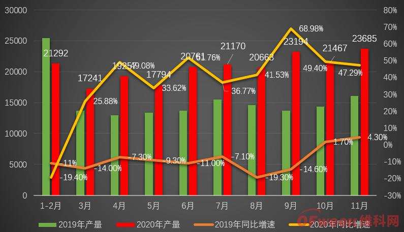 2019-2020年1-11月工业机器人产量(单位:万套,制表:OFweek维科网)