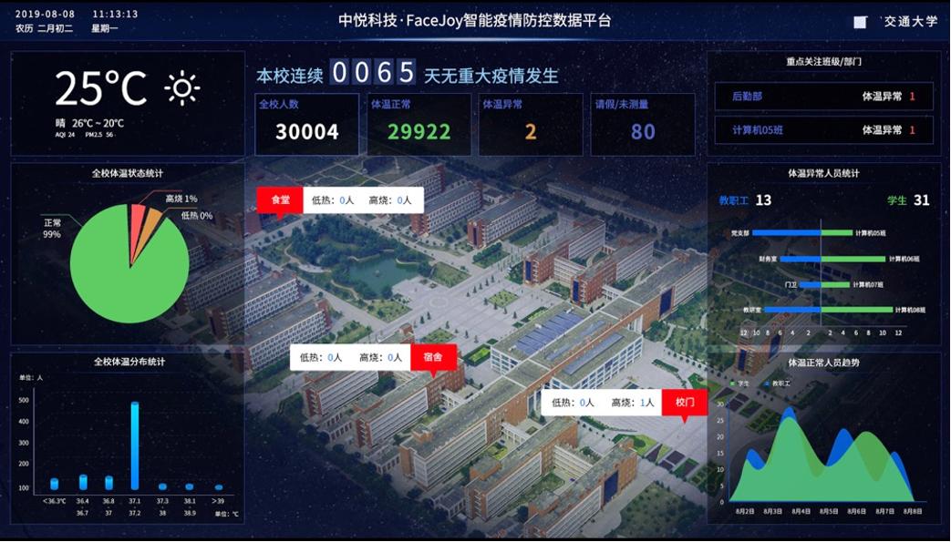 (中悦科技校园疫情防控大数据驾驶舱 图片来源:采访供图)