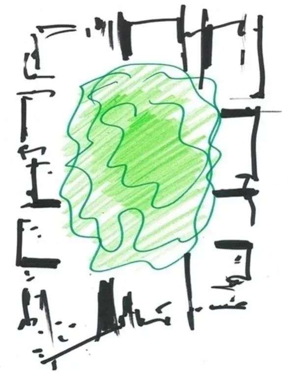 “它就像一个苹果:硬质界面的包裹下,是一个柔软而丰富的内核。”Renzo Piano大师在草稿本上画了一个苹果,开启了他在中国的第一个项目。