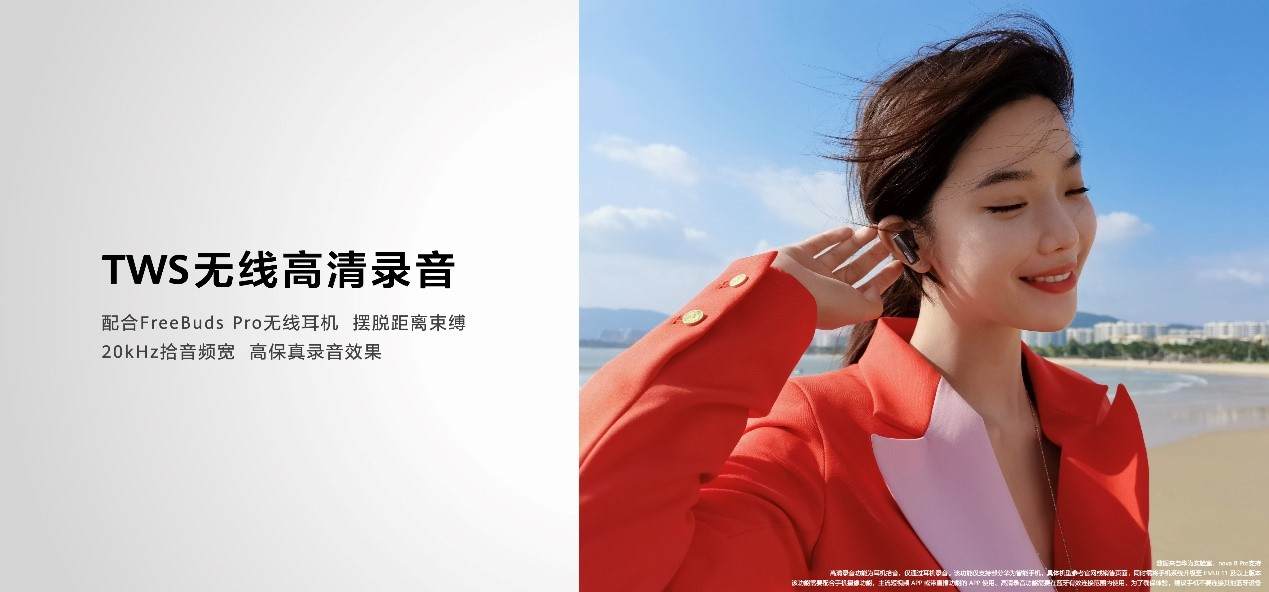 在收音层面,华为nova8 Pro通过创新设计结构,内置三枚全向麦克风,配合Audio Zoom波束成型算法,在拍摄视频时实现更好的收音效果。用户还可搭配华为FreeBuds Pro蓝牙无线耳机,体验TWS高清耳机无线录音。作为全球首款智慧动态降噪耳机,华为FreeBuds Pro无线耳机除了出色的降噪性能外,还随着EMUI 11升级了高清录音功能,可无损收录20Hz到20KHz频段的声音,全面覆盖人耳可感知的声音频段,不仅实现了声音的完美保留,还摆脱了声源与设备之间距离的束缚,当无线耳机变身收音设备,整个拍摄过程将更加自由随心。