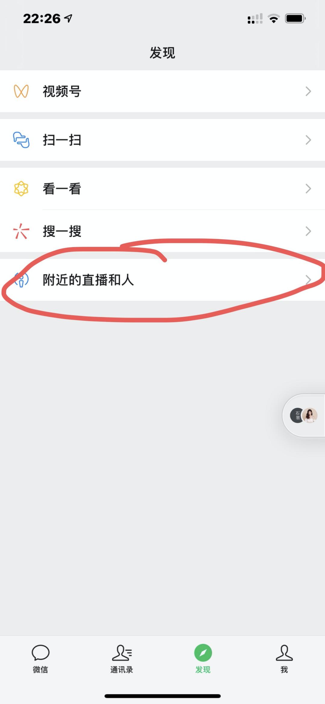 点击进入,可以看到附近的人的微信,可以打招呼(这是原先的功能,很奇怪为什么又放出来),可以看附近的视频号直播,可以看附近人发的视频号。