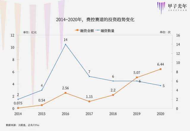 马太效应正在形成。据「甲子光年」统计,2016年是费控厂商的井喷之年,至少发生了14起融资事件,但从2017年开始融资数量急速下降,融资金额却逐年走高。今年有至少5家费控SaaS公司在疫情之下逆势融资,总融资额超过6亿元人民币,为近5年最高。