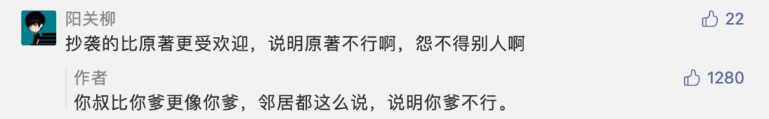 一篇热门文章对抄袭的观点,评论回复获得高赞