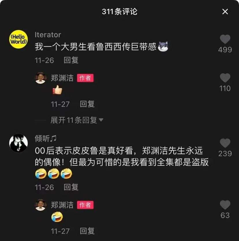 郑渊洁的评论让人感慨不已,微博用户 @ 弄潮儿大总管 就说:「郑渊洁的评论区好有趣,没有吵架和阴阳怪气,大家都在积极的和老先生互动,书迷们隔着屏幕发出评论的时候仿佛回到了看着童话书无忧无虑的童年。」
