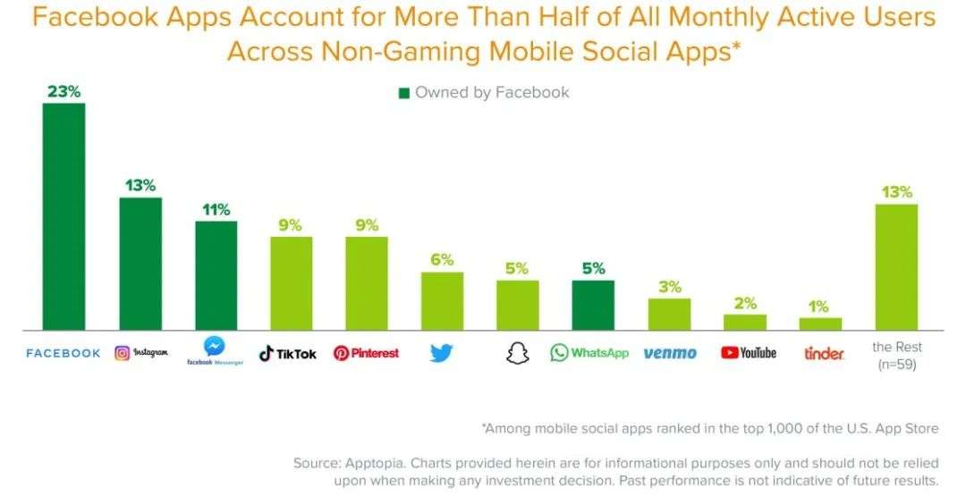 Facebook生态内的社交应用占据了巨大的市场份额