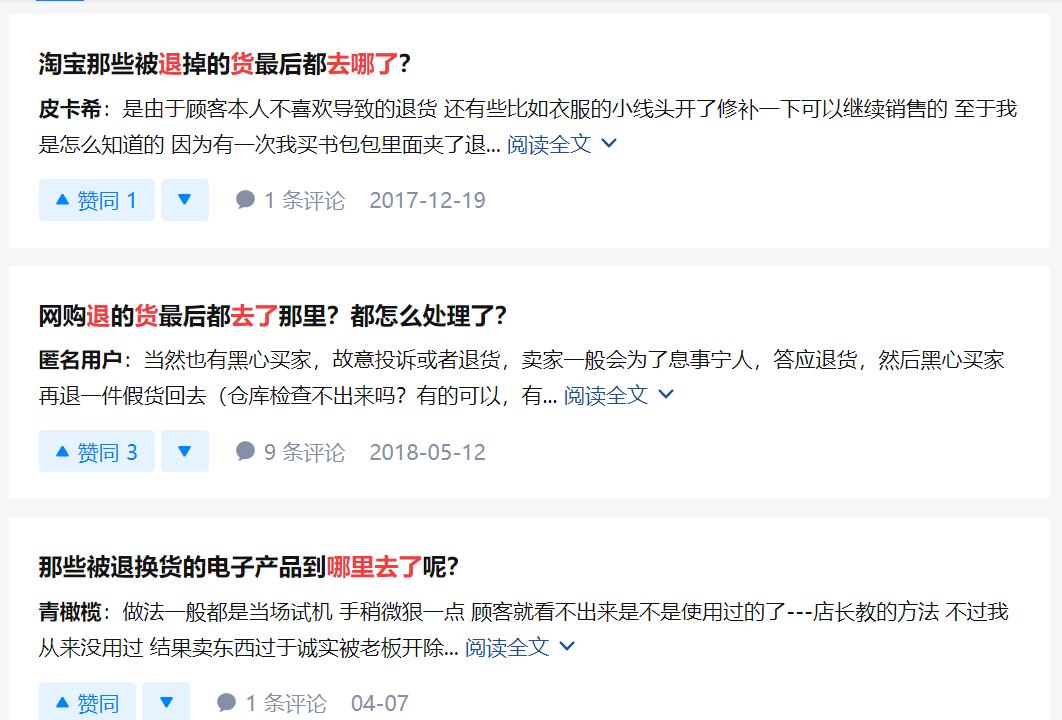 (知乎上有许多讨论退货的话题)