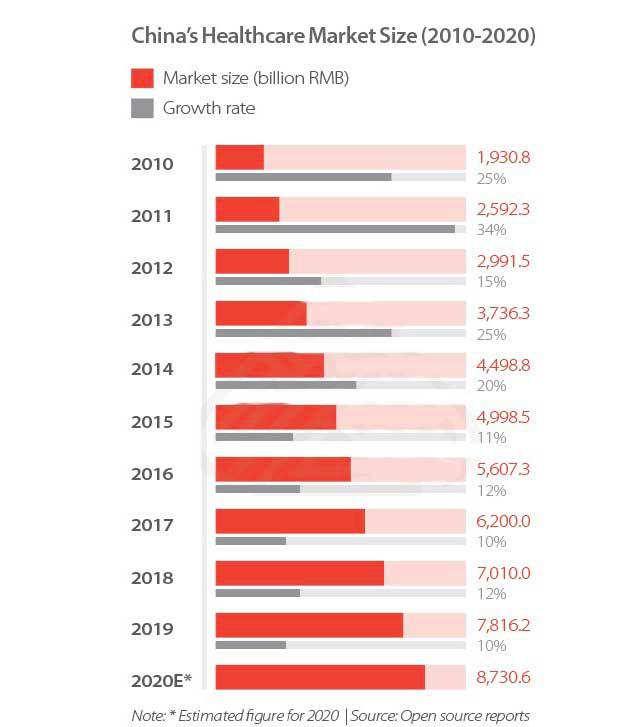 目前,中国医疗保健行业排名世界第二,仅次于美国。