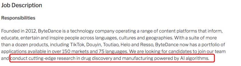 招聘通知中表示,「我们正在寻找合适的候选人加入我们的团队,在人工智能 AI 算法的支持下进行药物发现、制造的前沿研究。」