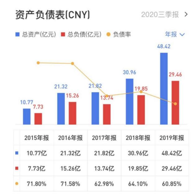 一直以来,三只松鼠的资产负债率一直难以降到60%以下(2019年为60.85%)。