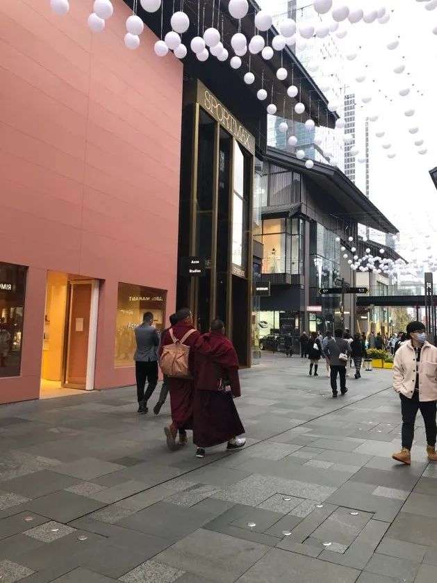 在成都太古里逛街的僧人。图片为作者拍摄