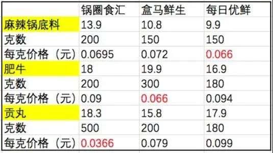 锅圈是最便宜的吗?红色为最“划算”的选择(制图:董芷菲)