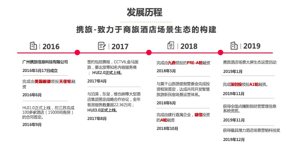 携旅定位于酒店场景数据服务运营商,致力于用数据智能技术为大旅游住宿企业提供商旅用户洞察、新零售场景系统构建、场景整合运营的产品和商业解决方案,助力大旅游企业数字化转型。携旅以集团和门店运营和服务数字化为抓手,通过核心的全域数据能力和对商业资产运营的理解,为品牌及门店提供基于产业数据智能的高效运营管理工具,为入住客人提供更优质更有趣的入住体验。