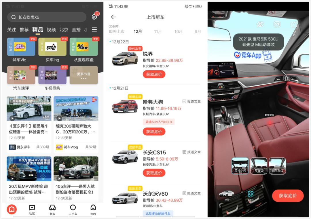 同时反映在数据上的,是一条上升的曲线。第三方数据机构极光大数据的数据显示,今年11月份,易车系App(易车+汽车报价大全)MAU达3110万,居行业第一位。其中易车MAU1962.9万,同比增长51.4%,汽车报价大全MAU为1147.2万,同比增长48%。QuestMobile的数据也体现了易车的高增长:截至2020年11月,易车App的DAU已连续24个月同比增长,MAU连续25个月同比增长。