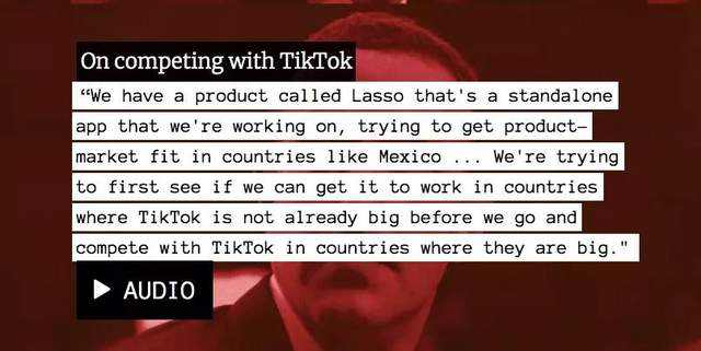 这些谈话发生在当年七月。彼时,Facebook正在布局一款名为Lasso的独立短视频App,并打算进军墨西哥——这个在当时还未被TikTok做大的市场。