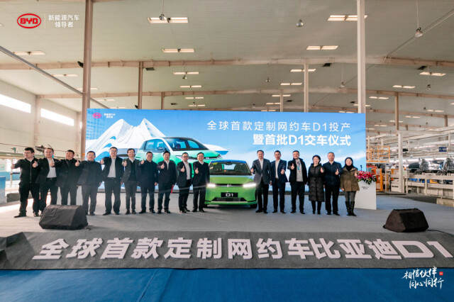 12月25日上午,在长沙雨花经开区的长沙市比亚迪汽车有限公司,由比亚迪与滴滴出行联合打造的全球首款定制网约车D1正式投产并进行首批新车交付。据悉,首批D1车型将率先在长沙投入运营,随后陆续推广到全国。预计年产量10万辆以上,新增产值超100亿元。比亚迪集团董事长兼总裁王传福、滴滴出行副总裁杨峻出席活动并致辞,长沙市、雨花区以及有关单位负责人参加活动。