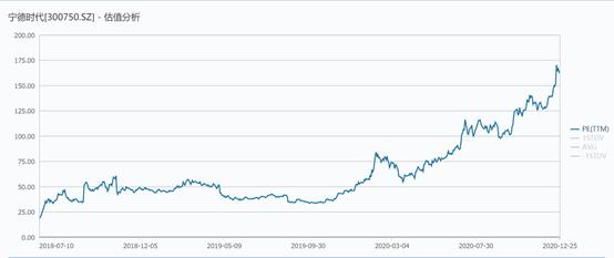 说之前来看看当前新能源龙头大权重宁德时代现在的估值问题:
