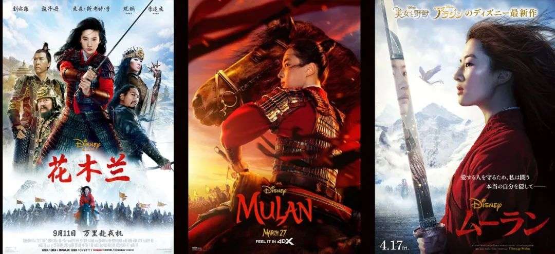 (《花木兰》中国大陆版 / 美国版 / 日本版正式海报)