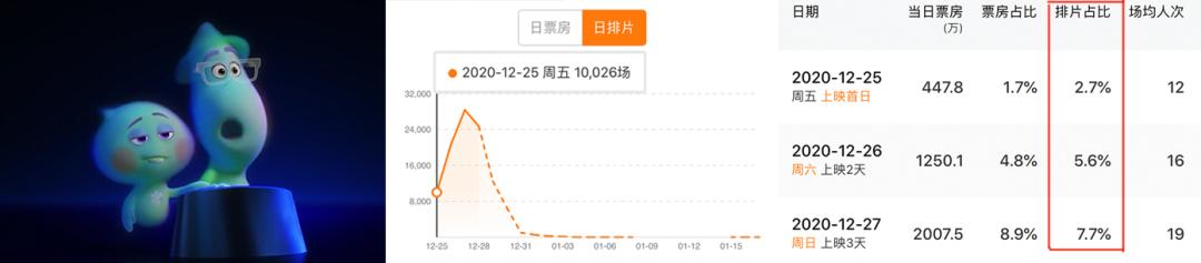 (《心灵奇旅》首日排片仅2.7%,数据来源:灯塔专业版)