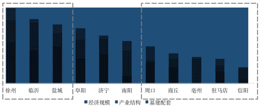 1、经济基建:徐州、临沂等GDP超4000亿元,驻马店、商丘等基建配套不足