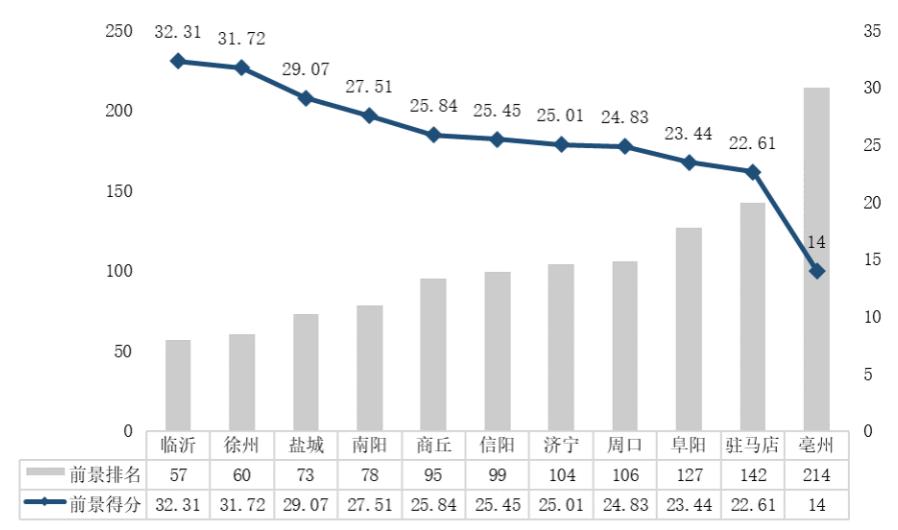 2、城市前景:临沂、徐州、盐城排名靠前,阜阳、驻马店购买力弱