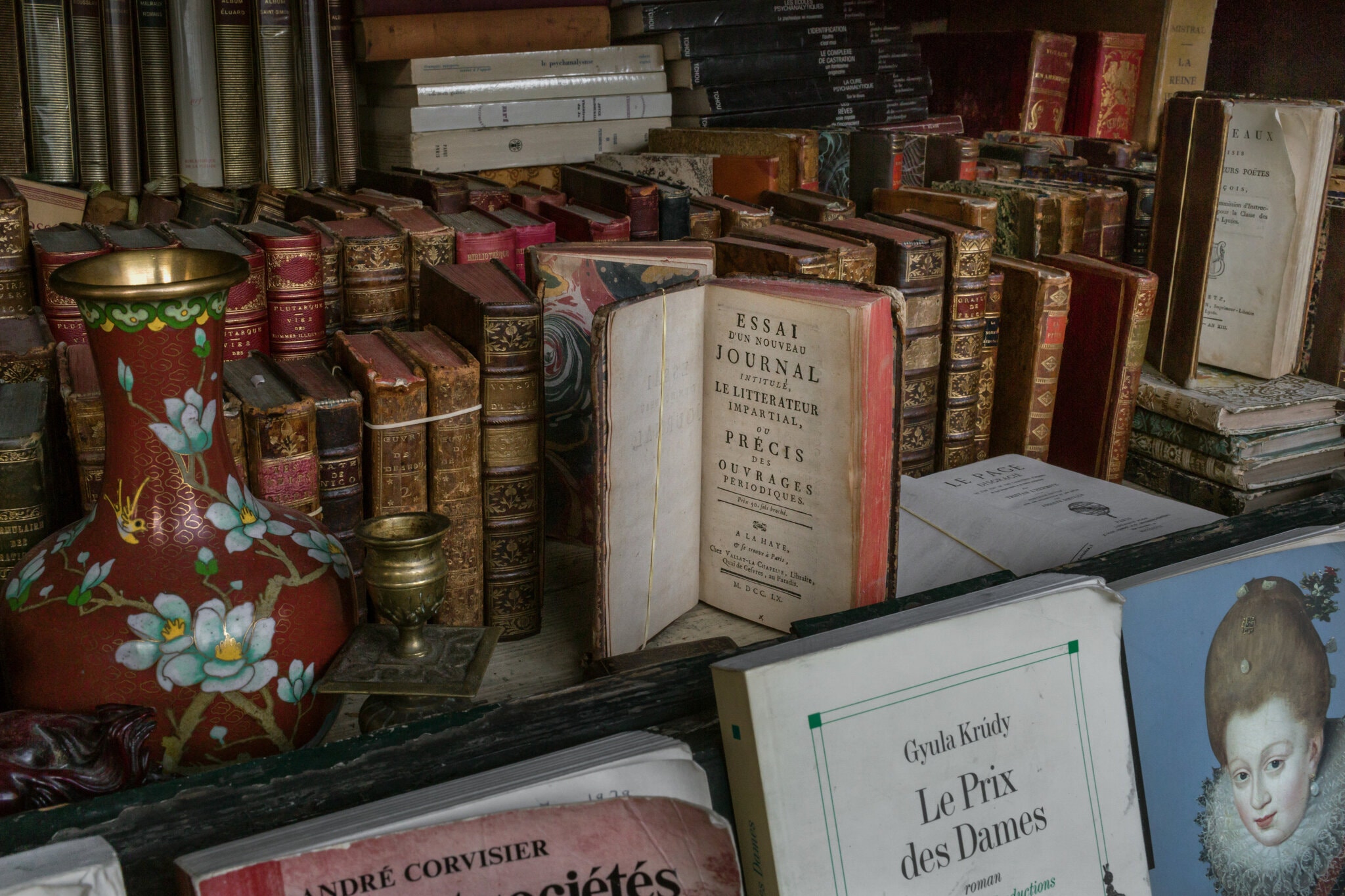 在最近一个微风拂面的日子里,Jérôme Callais用玻璃纸紧紧包裹着一本Robespierre的二手传记,用行家般的手腕轻拍了一下这本紫红色硬皮精装书,然后把它放在塞纳河岸边他深绿色的书架上,靠近一本Talleyrand的厚重大部头。