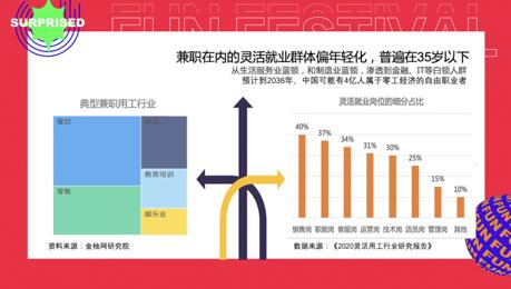这一代年轻人受社会、文化和科技的影响,是非常有自主意识的一代,不再满足于按部就班,不喜欢常态化,更向往自由、有趣、有意义、有价值的生活状态,这潜移默化地在影响年轻人的就业观念:不是安稳的工作就一定是最好,不是朝九晚五的工作就是最好,他们追求的是更能实现自我价值、更有回报的工作,而这个回报可以是精神上的,可以是物质上的,或者是可以摆脱某些束缚的。所以,现在做兼职或是做副业的灵活就业人群也偏年轻化,普遍在35岁以下,而且正在从生活服务业和制造业,渗透到金融、IT等人群。