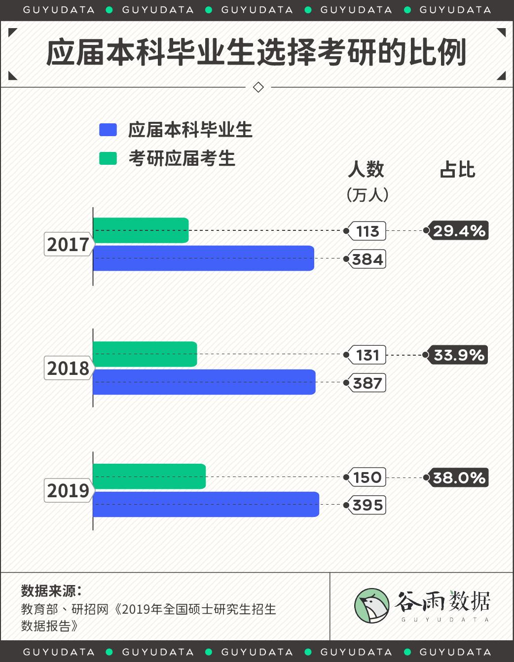 本科毕业的学历显然已经不够用了,到2019年,有38%的应届生选择继续考研。