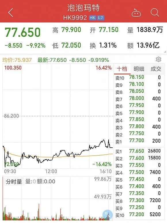 泡泡玛特股价