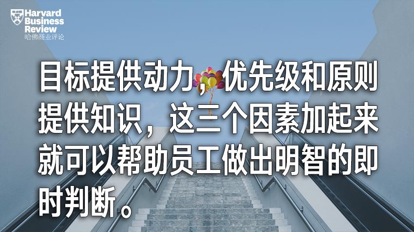 目标提供动力,优先级和原则提供知识,这三个因素加起来就可以帮助员工做出明智的即时判断。