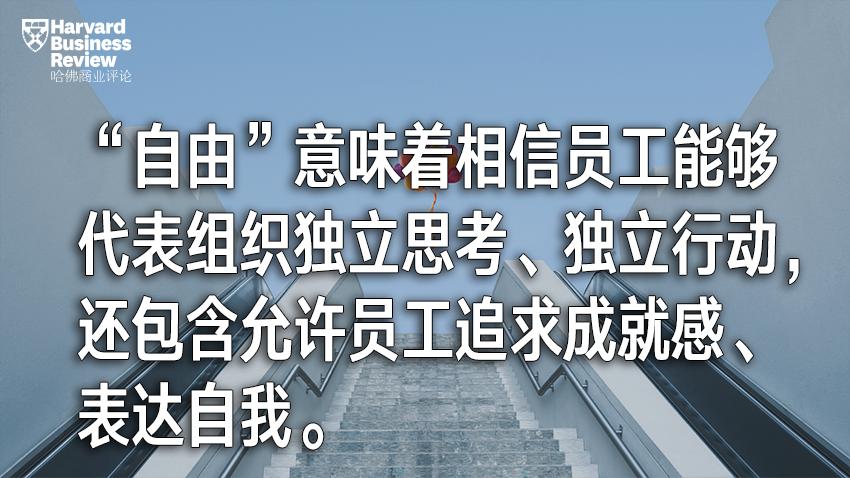 “自由”有很多种含义,但作为这里的基准线,它意味着相信员工能够代表组织独立思考、独立行动,还包含允许员工追求成就感、表达自我。