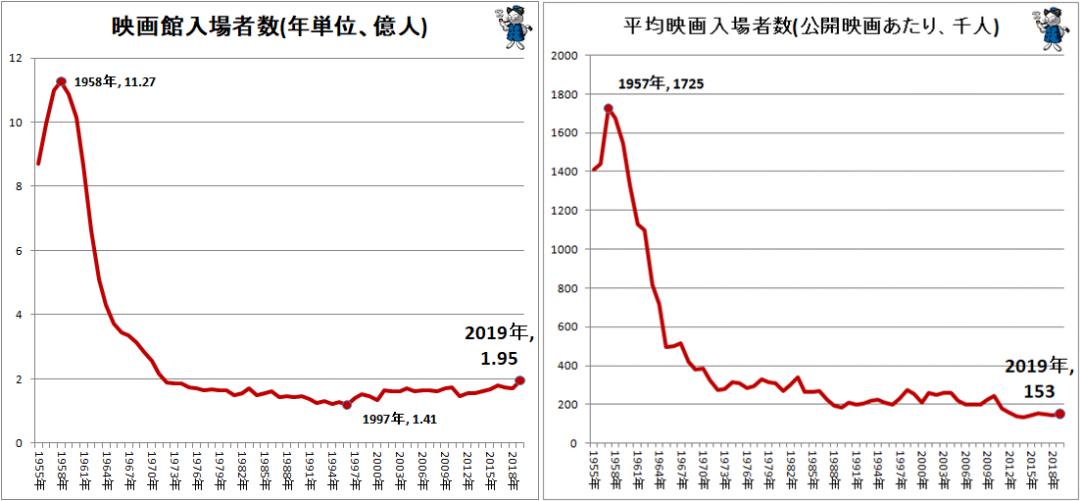 1958年,日本全年的电影院入场规模达到11亿人次以上,当时的票价只有65-70日元(合人民币5元左右)水平。
