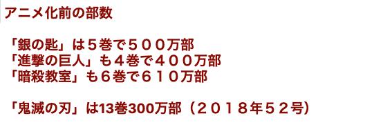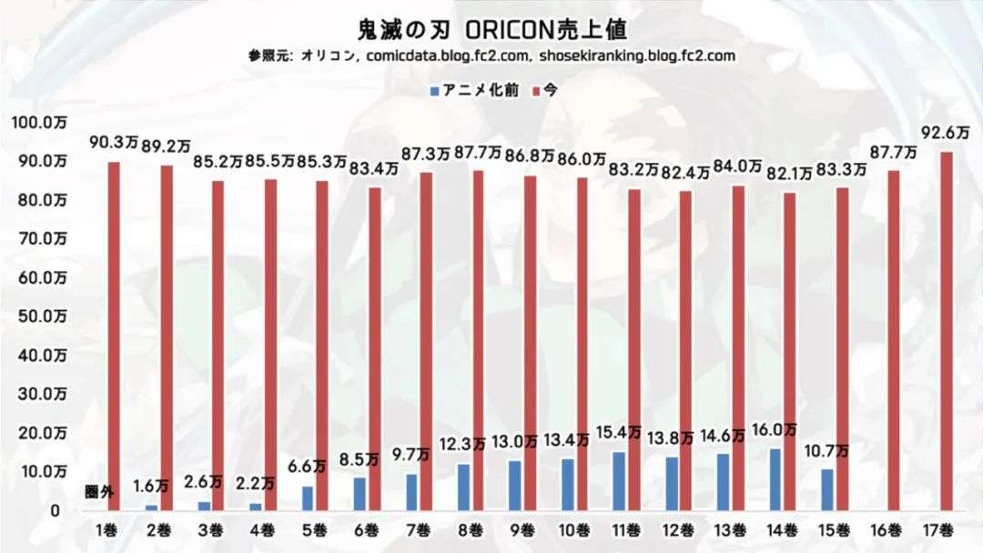 而该作的前JUMP编辑片山也表示,《鬼灭之刃》人气飞涨到如此地步,最初是“完全没有预料到的”,并且也认为 “还是动画化带来的影响”。