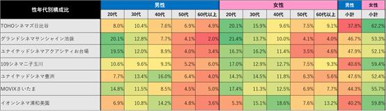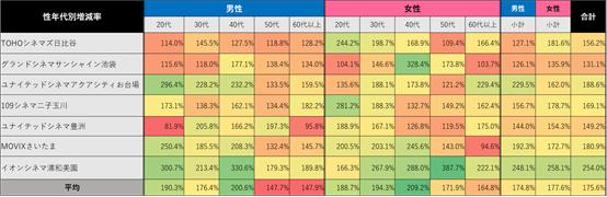 日本商业分析工具KDDI抽取了东京都和埼玉县的7家电影院,选择2020年10月1日-25日为区间,分析了《无限列车篇》上映前后,电影院来访者流量、性别、年龄的变化情况。[3]