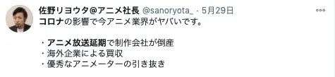 “新冠的影响下现在动画业很糟糕。动画延期导致动画公司破产;海外企业的收购行为;优秀动画师的隐退……”