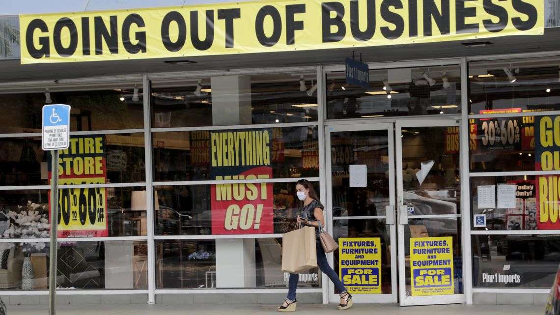 2020年8月6日,一位顾客离开佛罗里达州即将倒闭的家具零售商Pier 1的门店。图片来源:AP Photo/Lynne Sladky